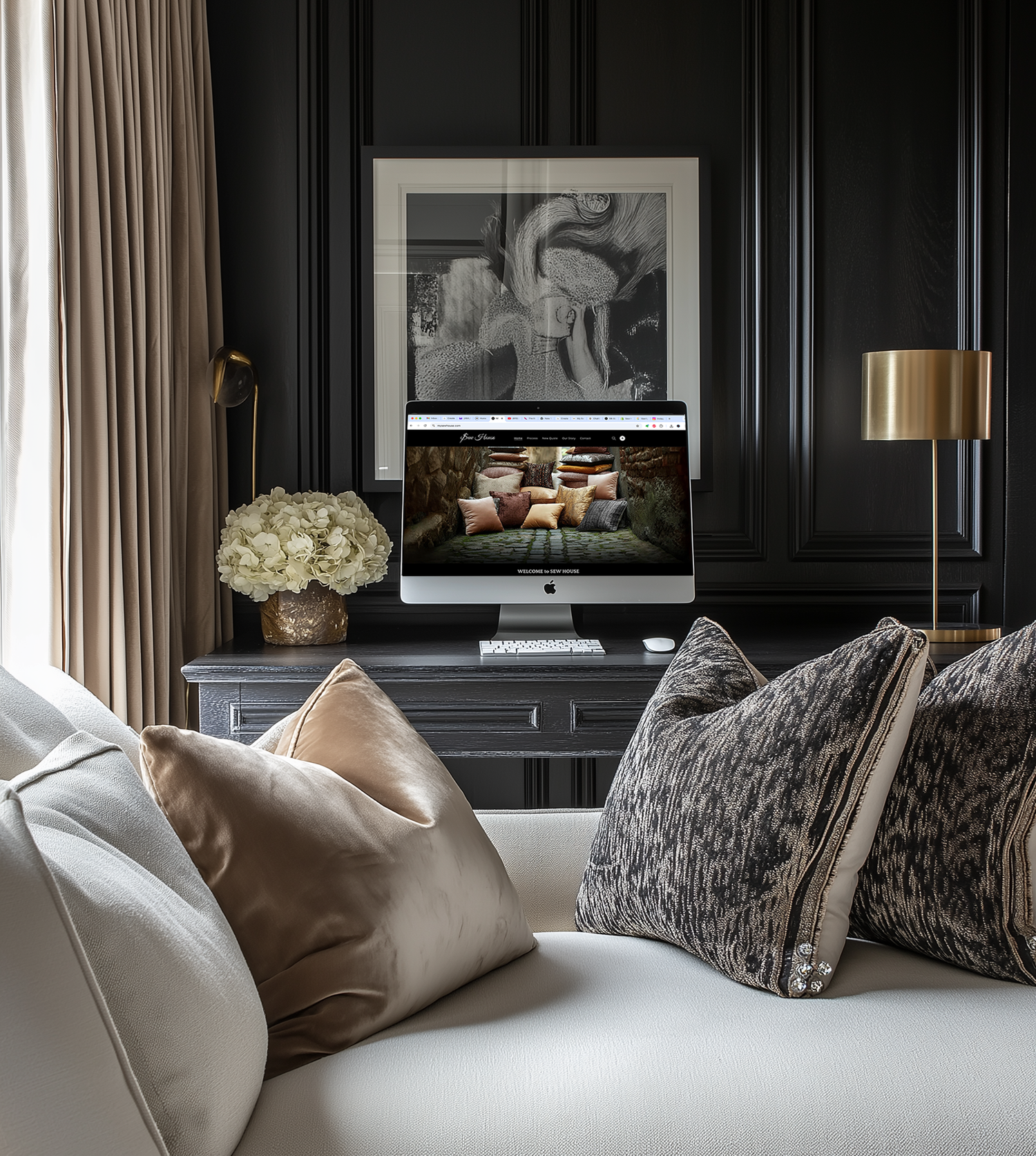 Welcome to Sew House! As a luxury workroom with over a decade of experience, we’re excited to open our doors for all your home goods sewing projects. From indoor and outdoor pillows to drapery panels and bedcovers—all made right here in the USA—we bring your creative visions to life with precision, reliability, and impeccable craftsmanship.